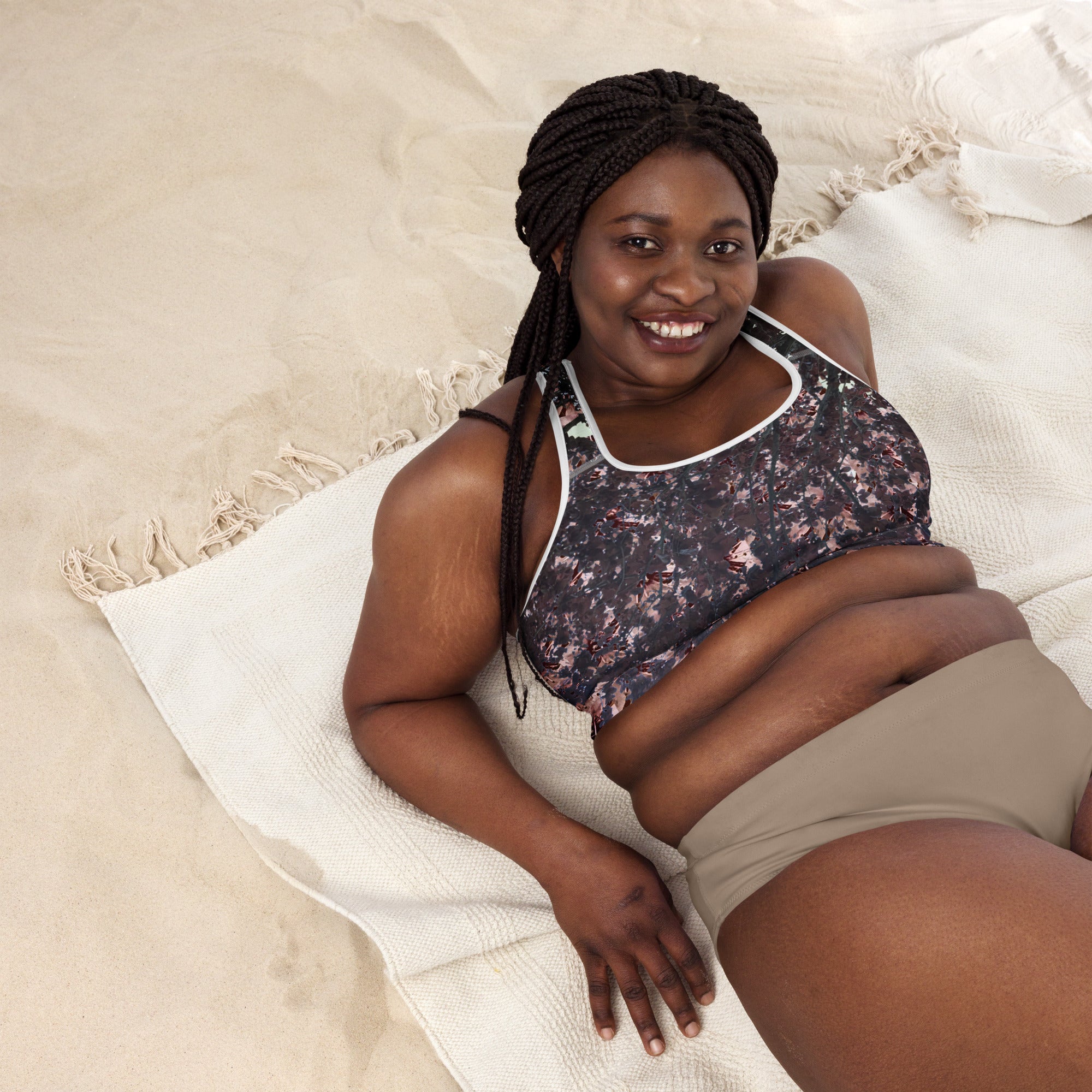 Designed for the active woman who loves nature, this sports bra combines technical athletic features with our signature real flower photography. The moisture-wicking fabric and reinforced straps provide the support you need, while the beautiful cherry blossom design connects you to nature's energy.
