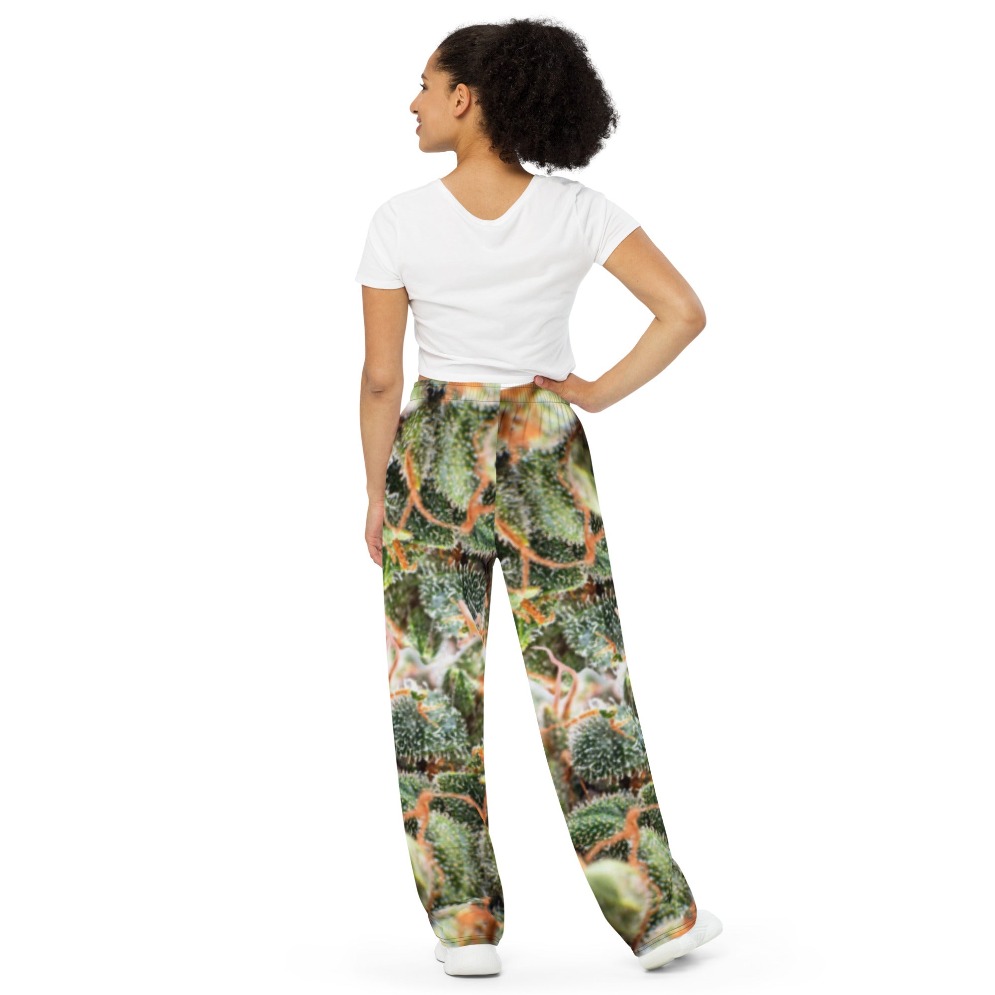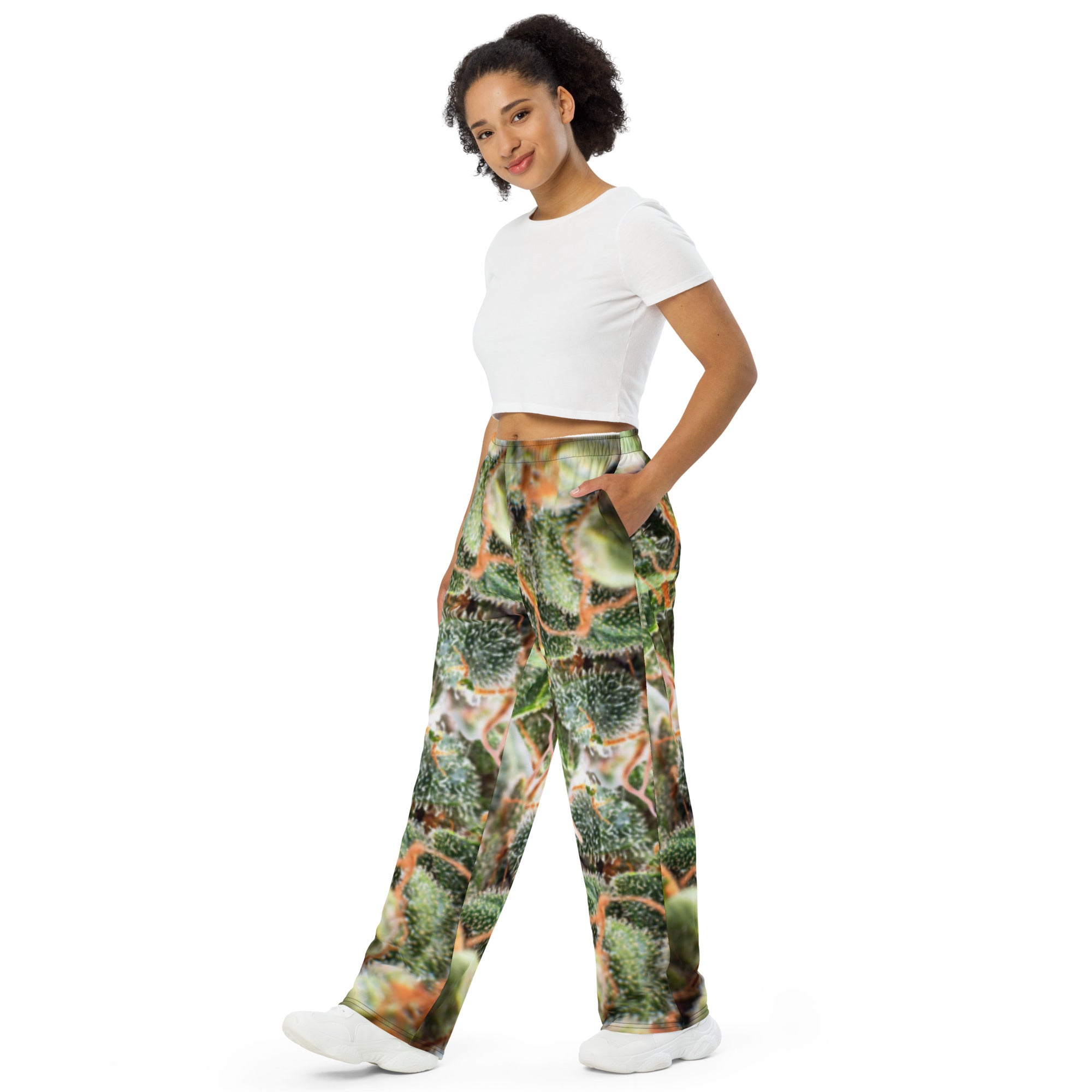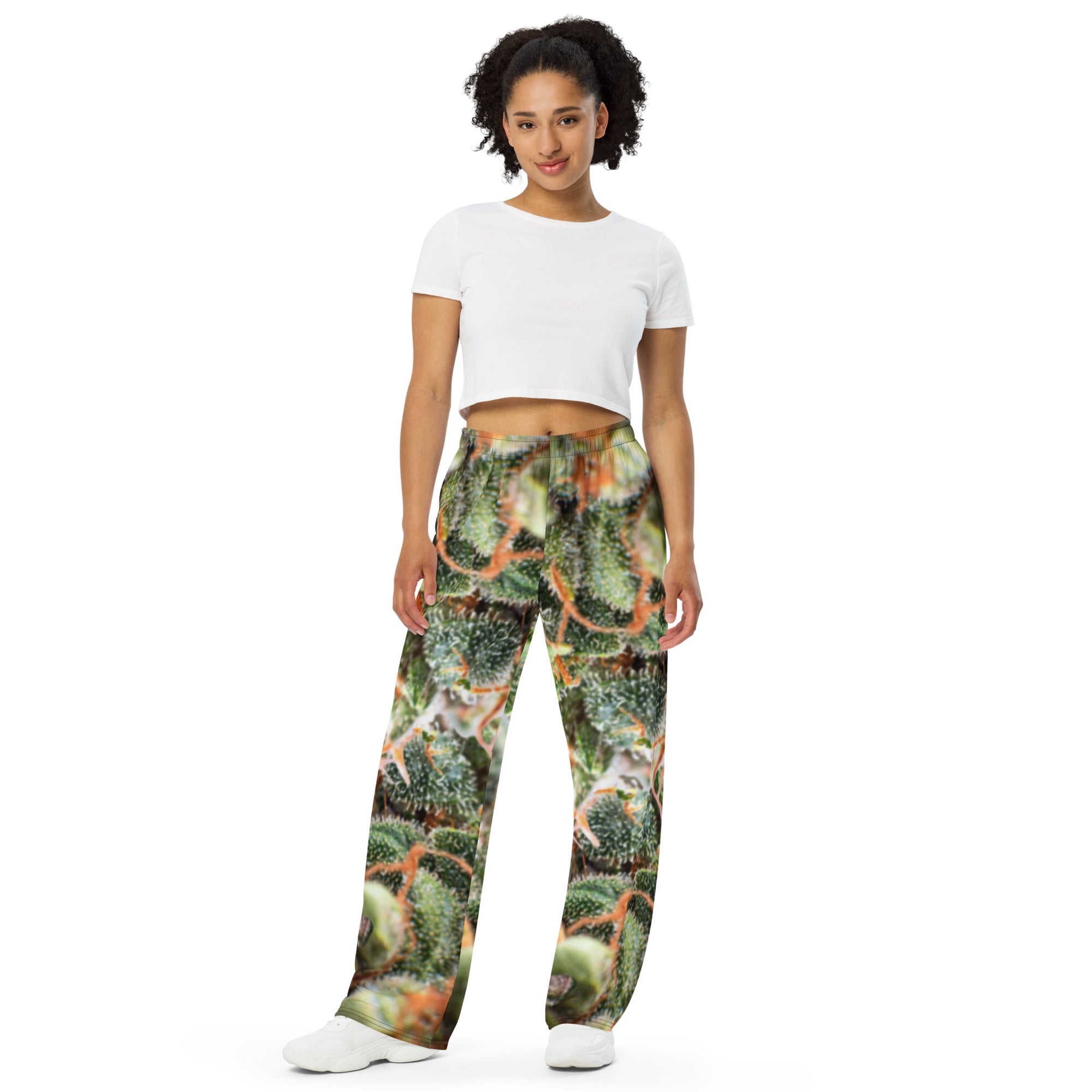 Ready for the ultimate comfort meets sophisticated cannabis art? These stunning wide-leg pants feature **Da-Bud** - **real cannabis bud photography** captured in its later stages of growth, redesigned into an artistic display of Fancy (As)L Pants style that's absolutely mesmerizing! ✨