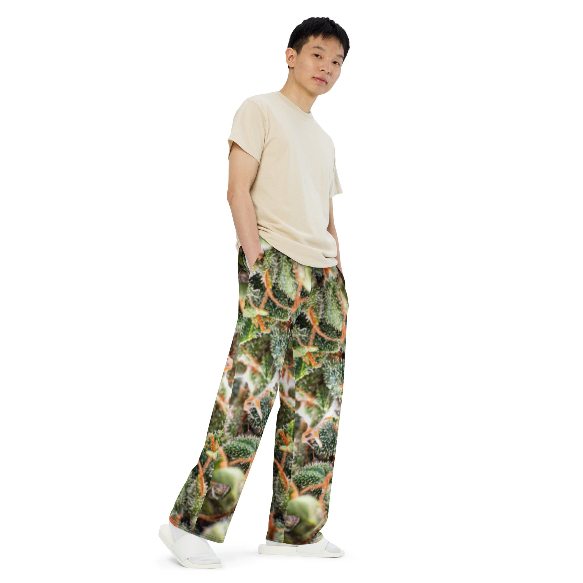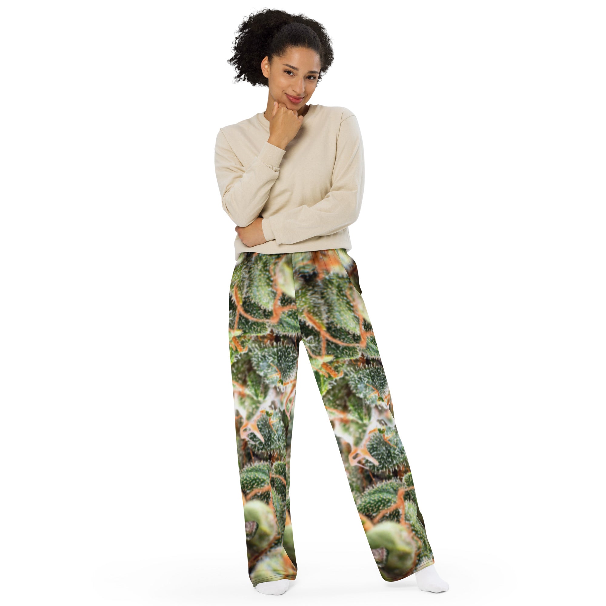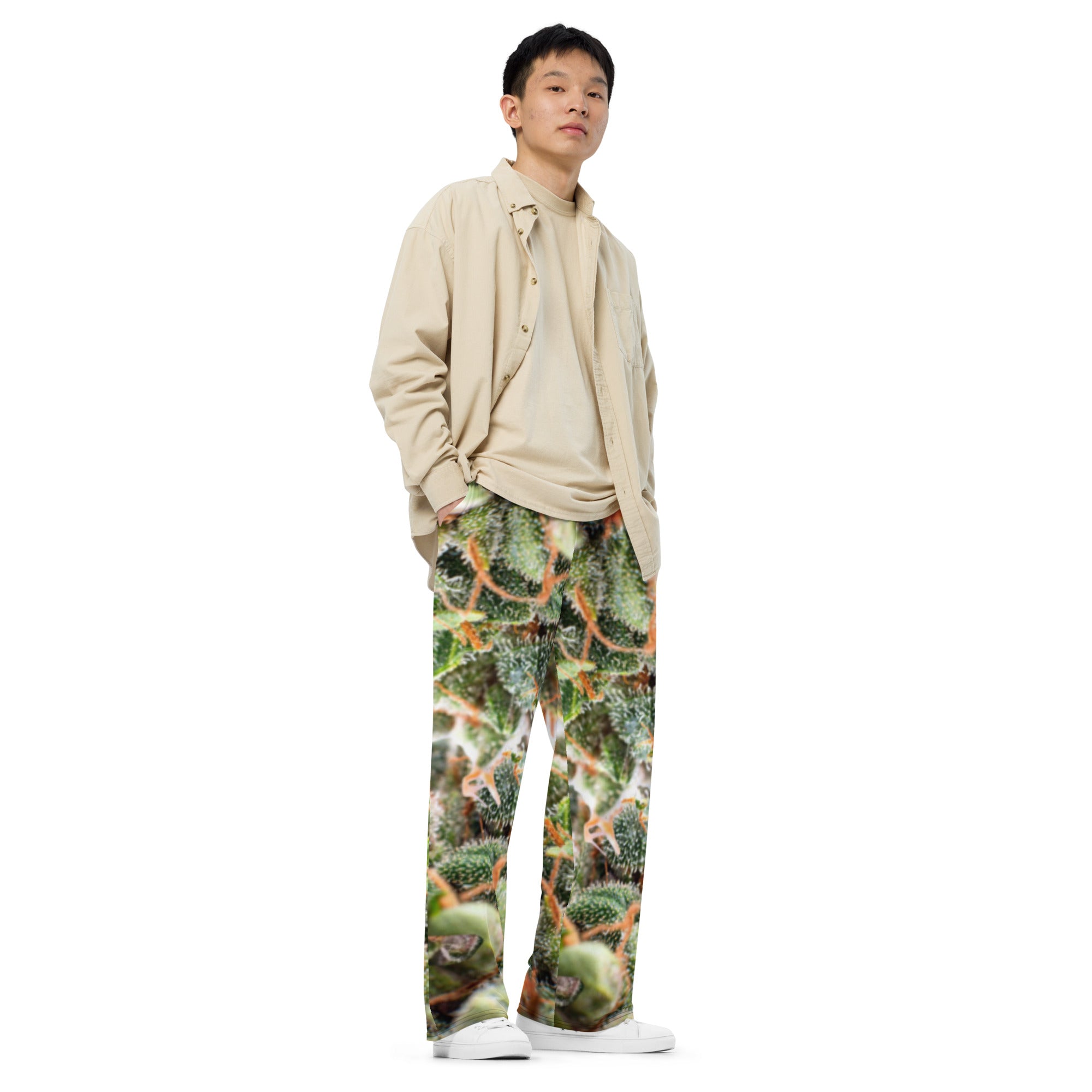 Ready for the ultimate comfort meets sophisticated cannabis art? These stunning wide-leg pants feature **Da-Bud** - **real cannabis bud photography** captured in its later stages of growth, redesigned into an artistic display of Fancy (As)L Pants style that's absolutely mesmerizing! ✨