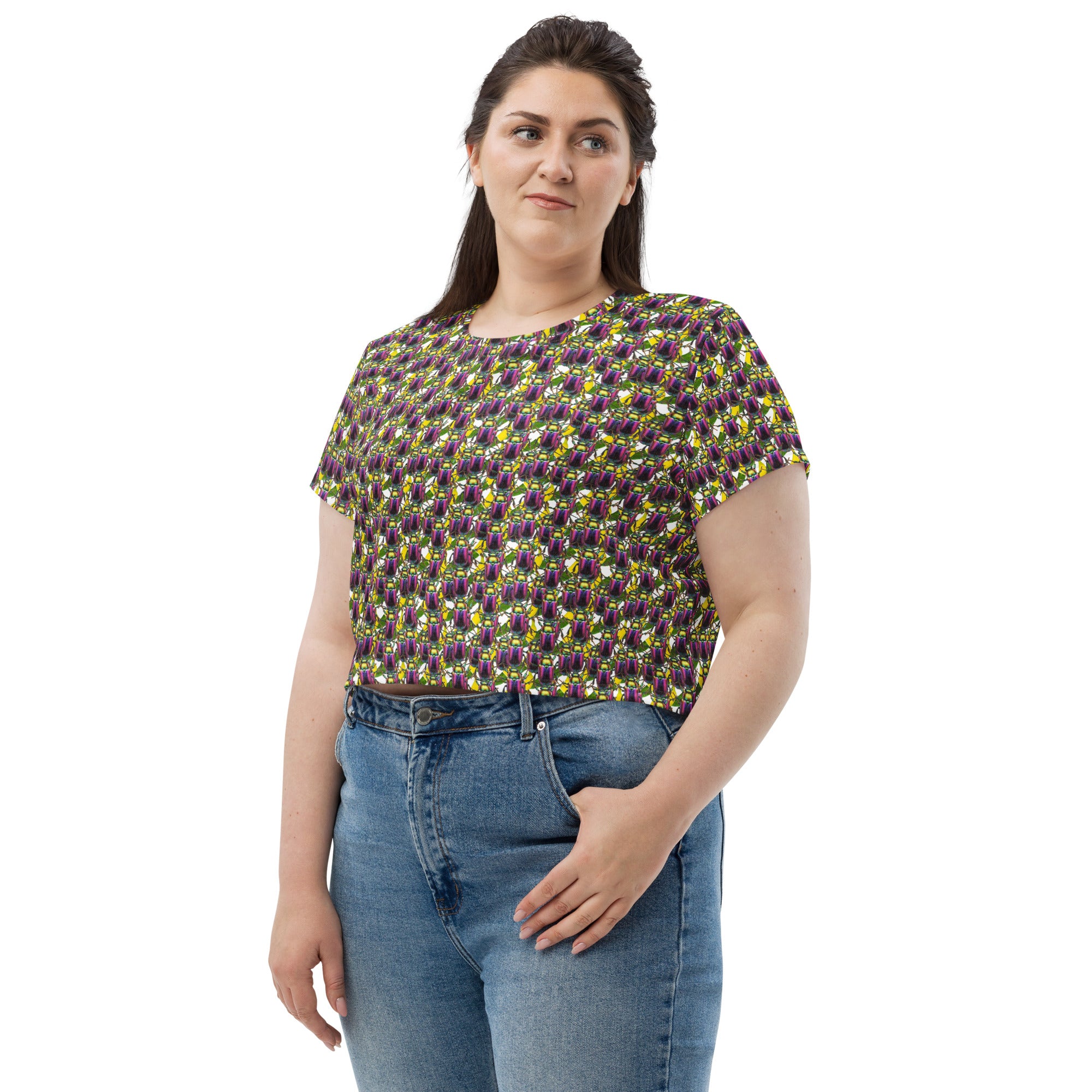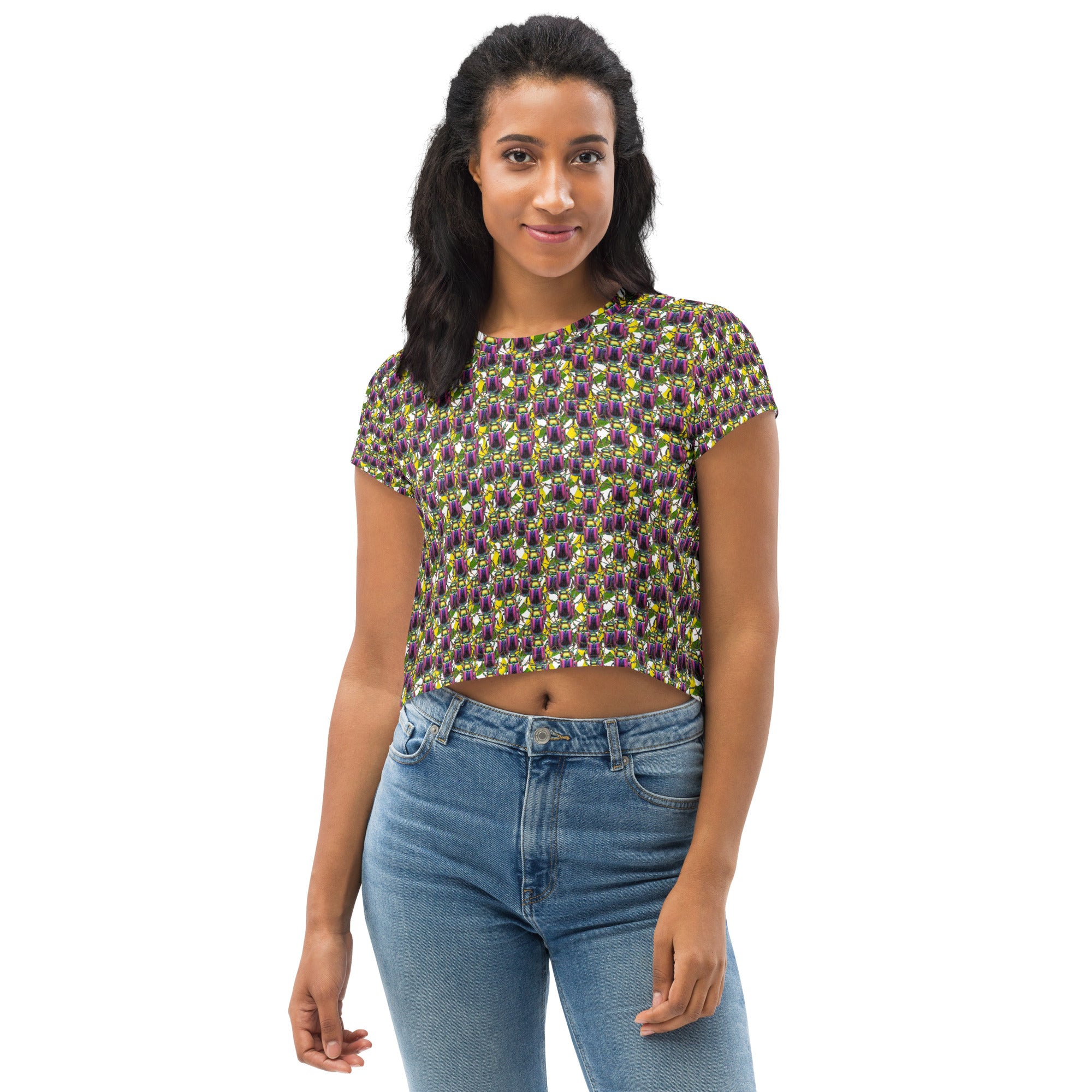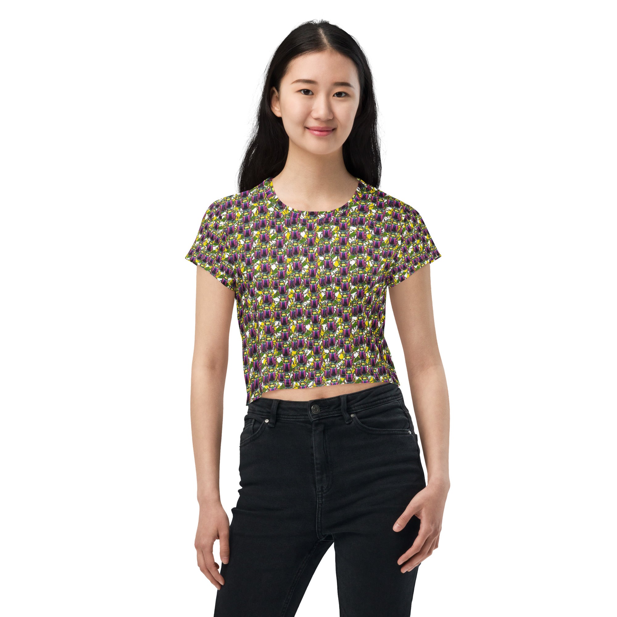 This isn't just a crop tee - it's a conversation starter! The original all-over design is definitely worth showing off, so don't hesitate to own one of these beauties. They're meant to be adored and will quickly become your go-to piece for effortless style with a nature-inspired twist. 🦋