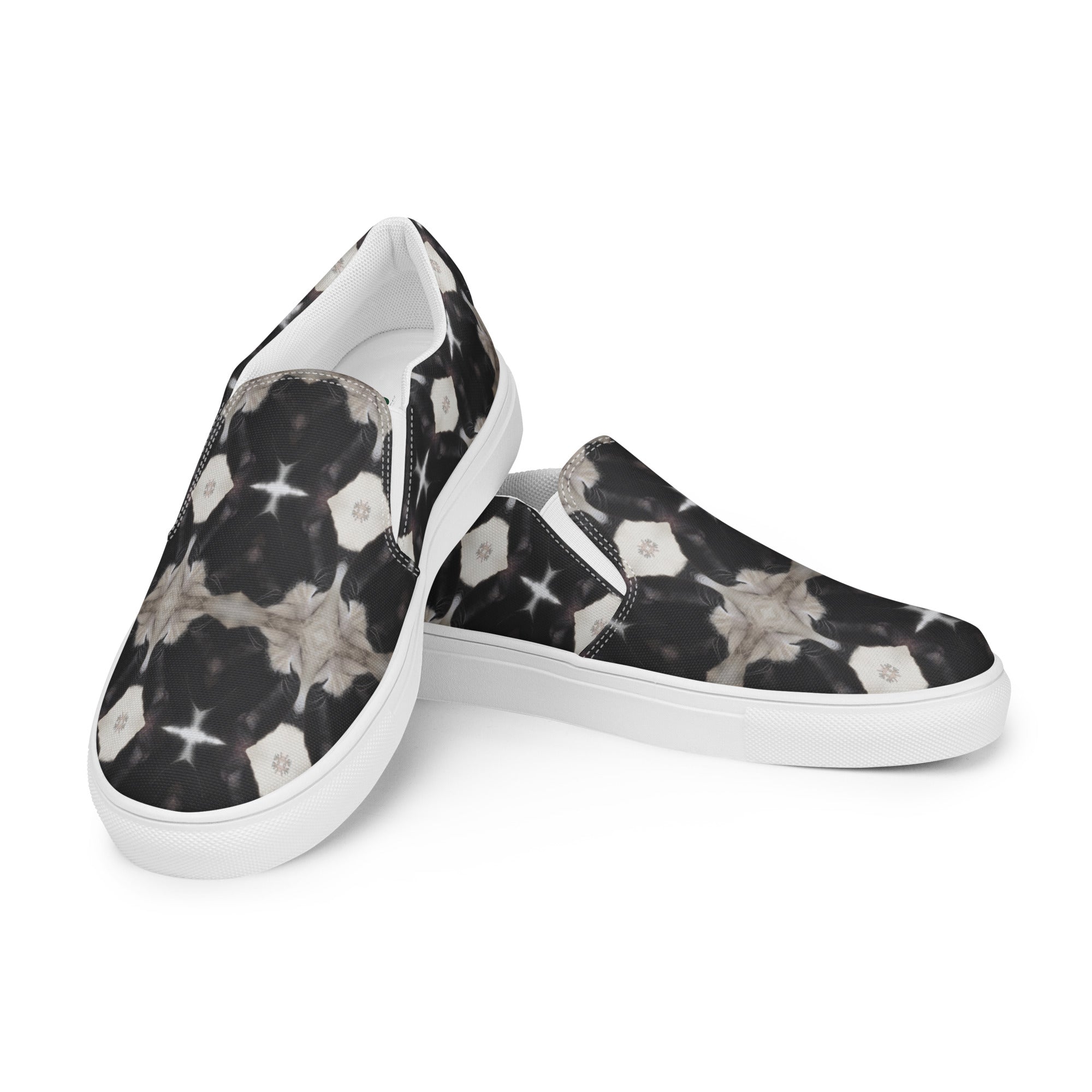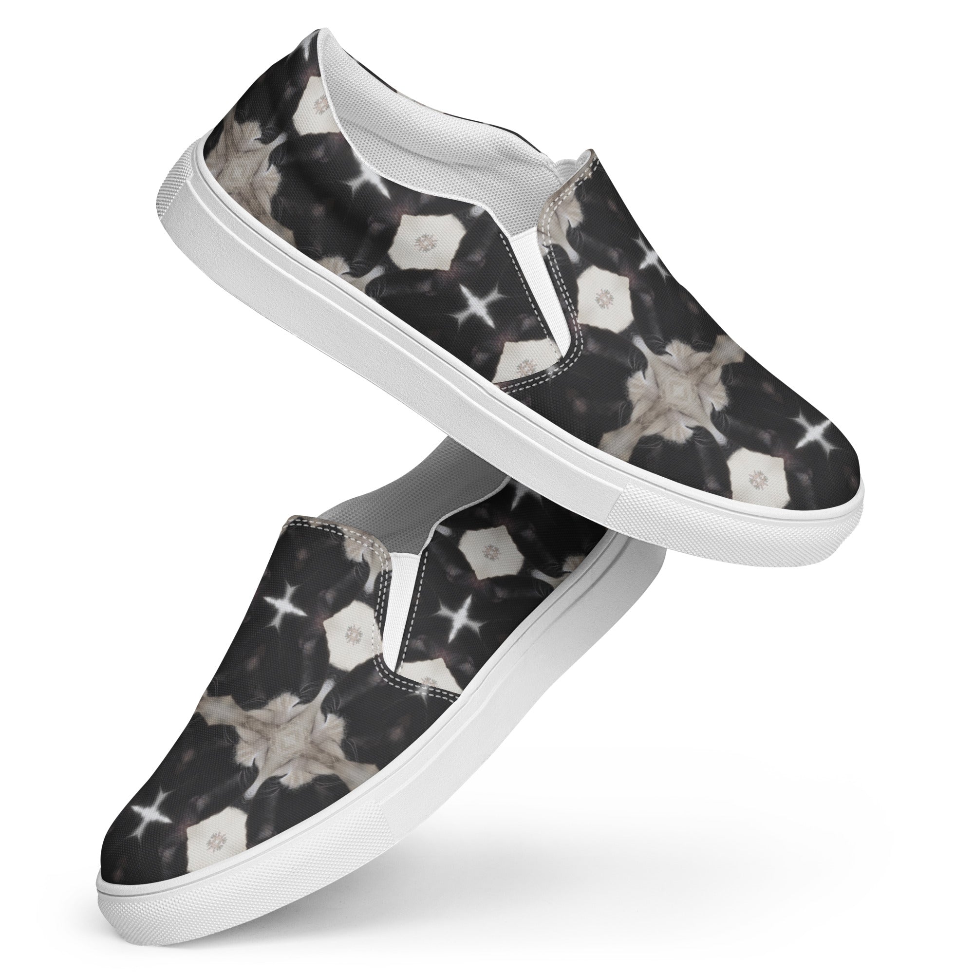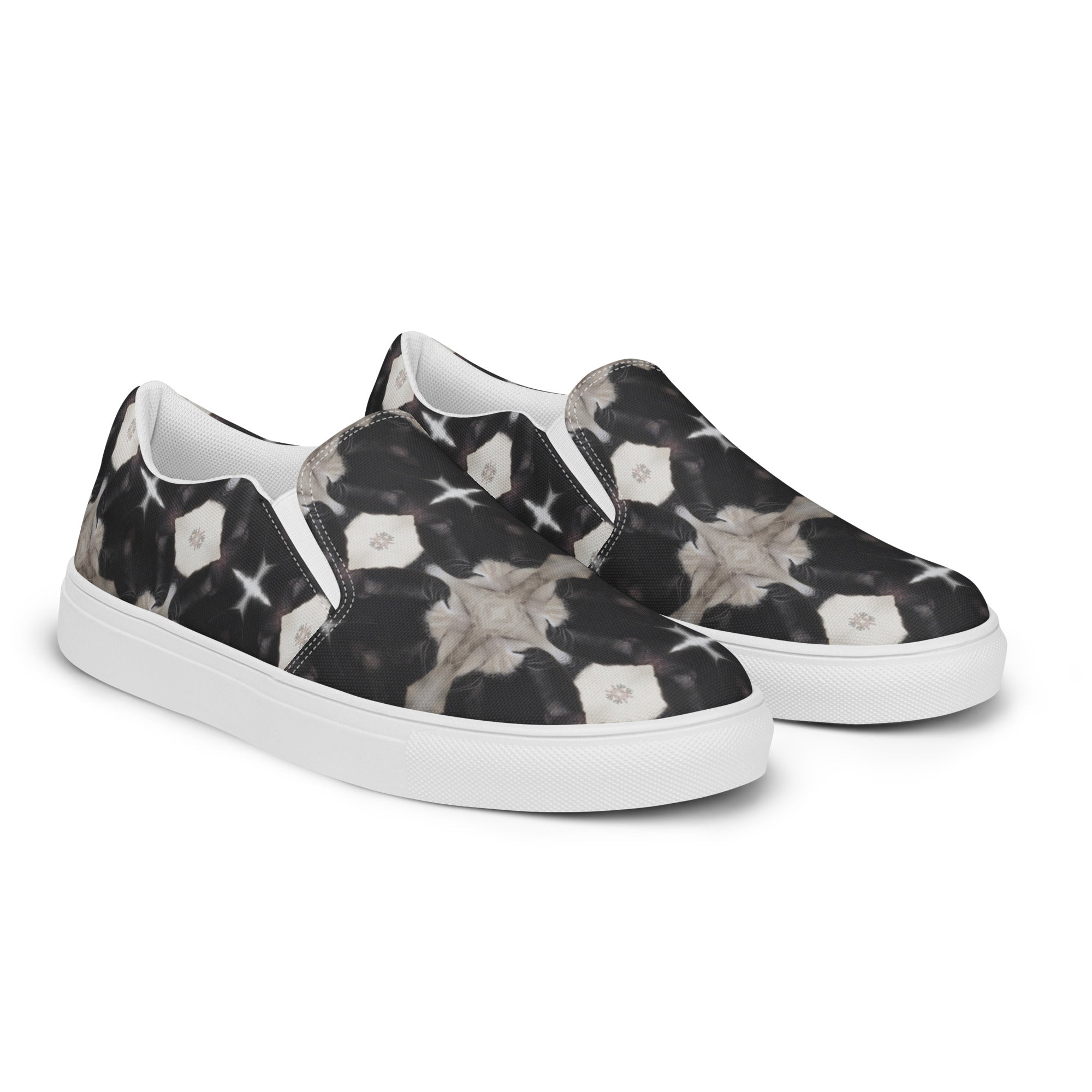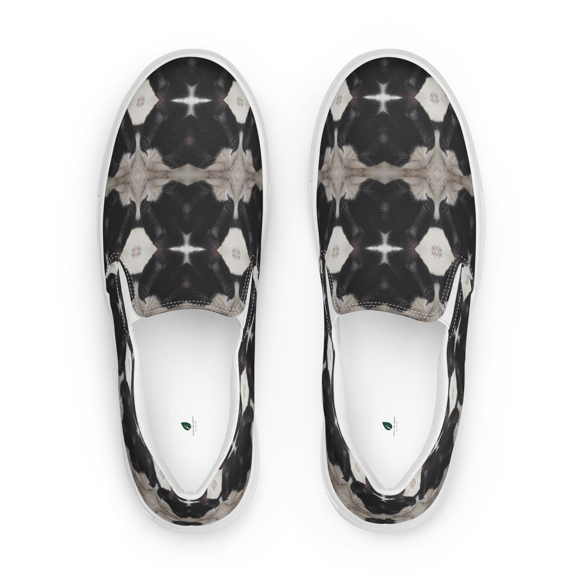 Step into a mystery with the Leila the Kitten slip-ons! 🐱✨ These aren't just shoes; they are a walking conversation piece. Featuring Leila the Kitten redesigned and made Fancy as L, the unique pattern transforms feline beauty into a fancyciful abstract design that will have everyone asking, "Is it really a kitten?" 🔍🎨