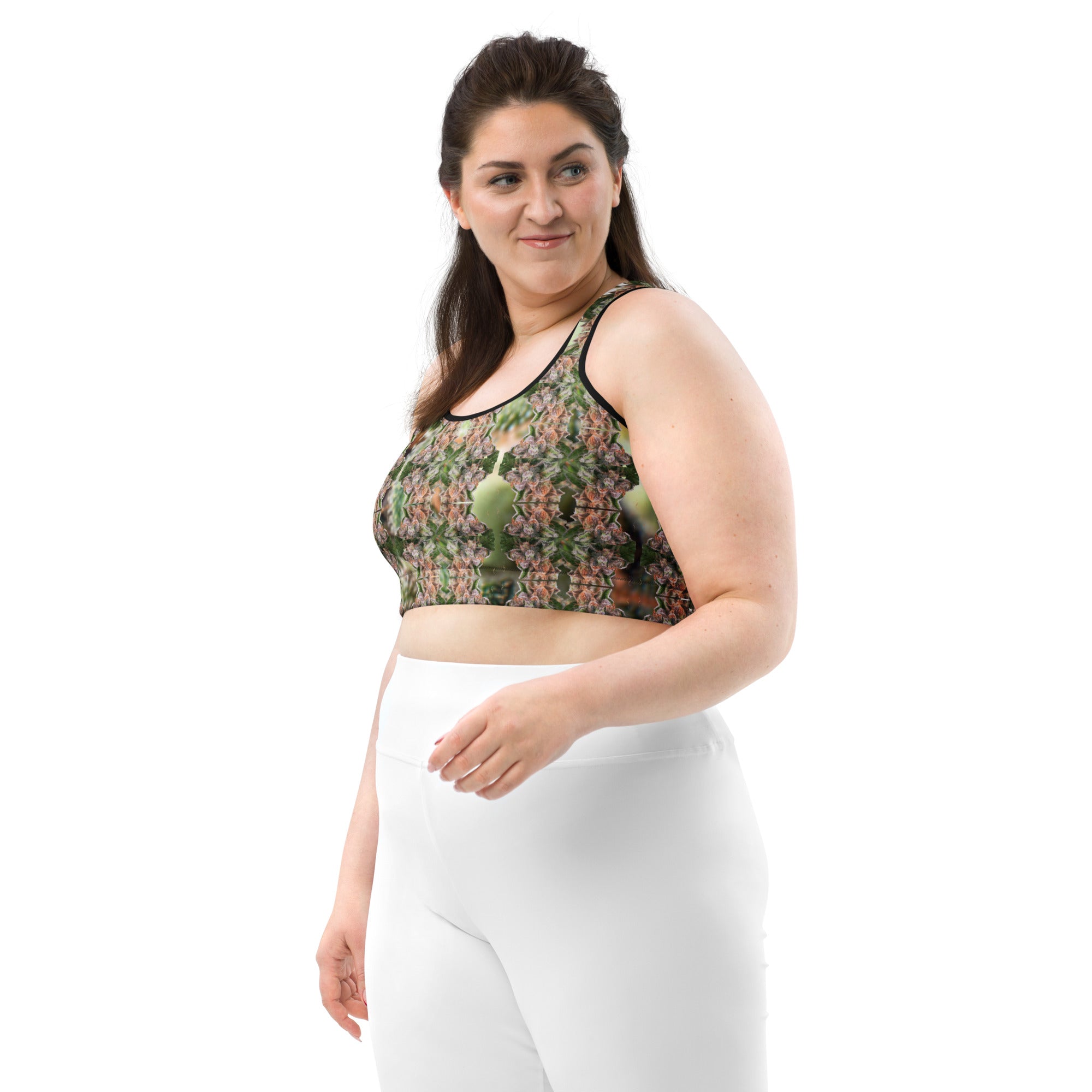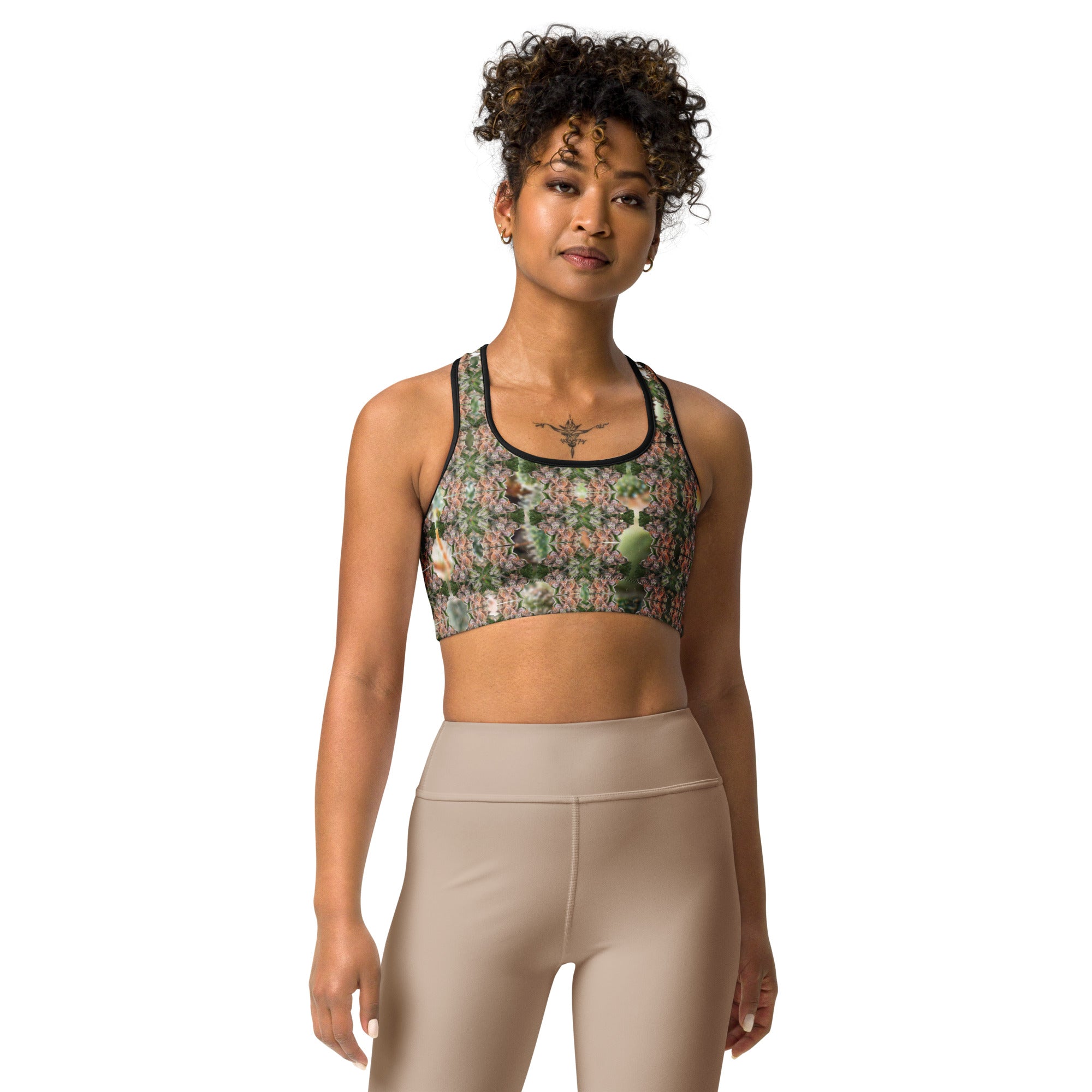 *Cannabis flower sports bra design, moisture-wicking athletic wear, superior support system, free shipping*