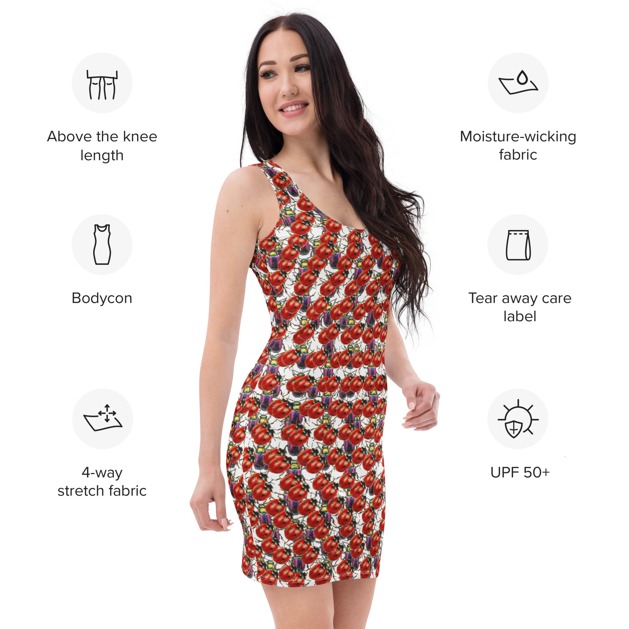 Stand out in style with this exquisite Bodycon Dress, featuring an exclusive design inspired by a blend of ladybirds, bugs, and wood beetles. ššŖ² Natureās most stunning patterns come together in a truly unique, all-over print that flatters your figure and turns heads everywhere you go.