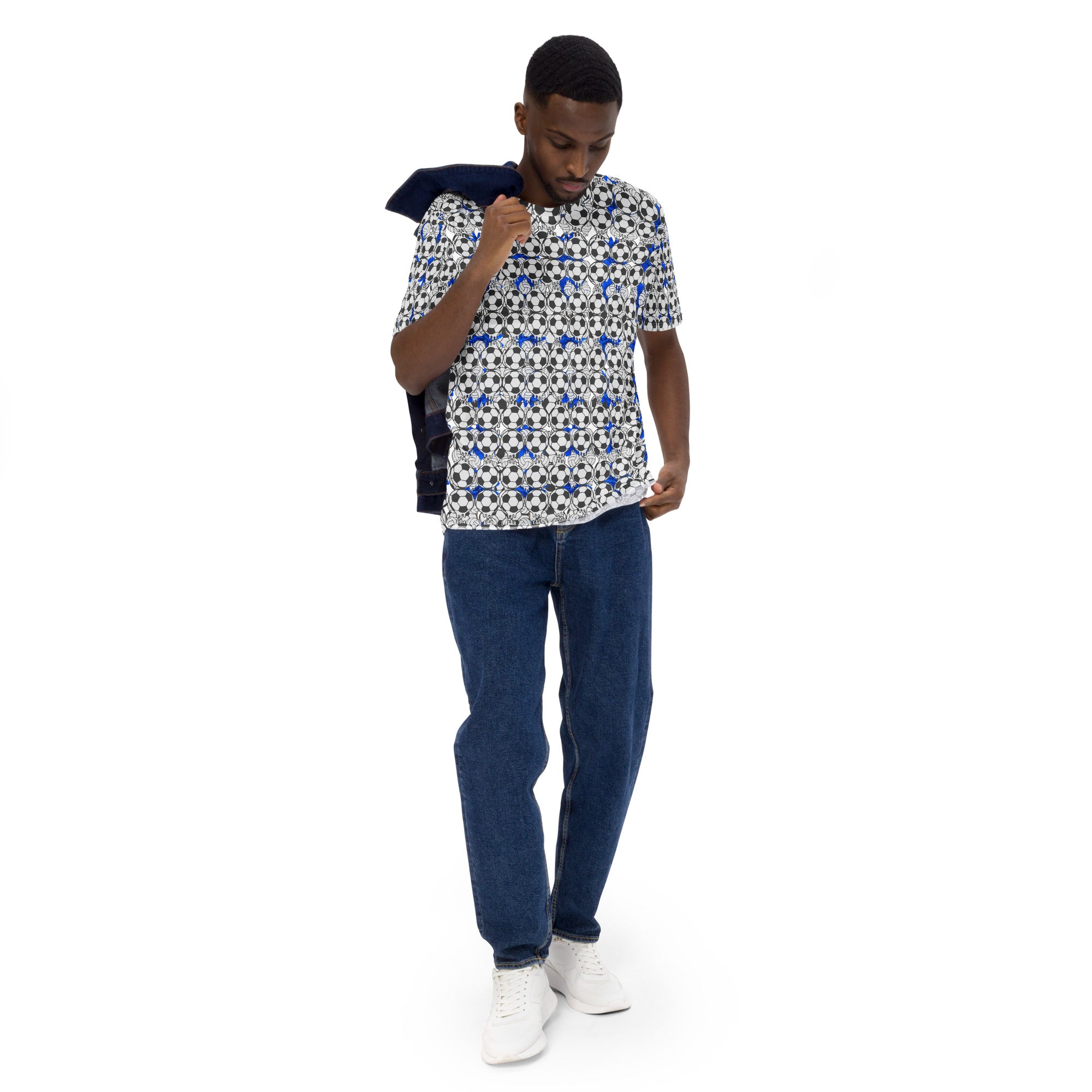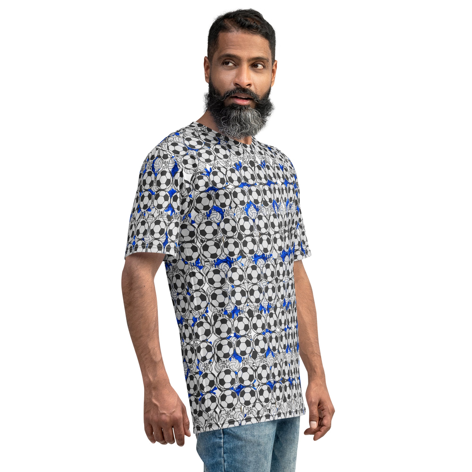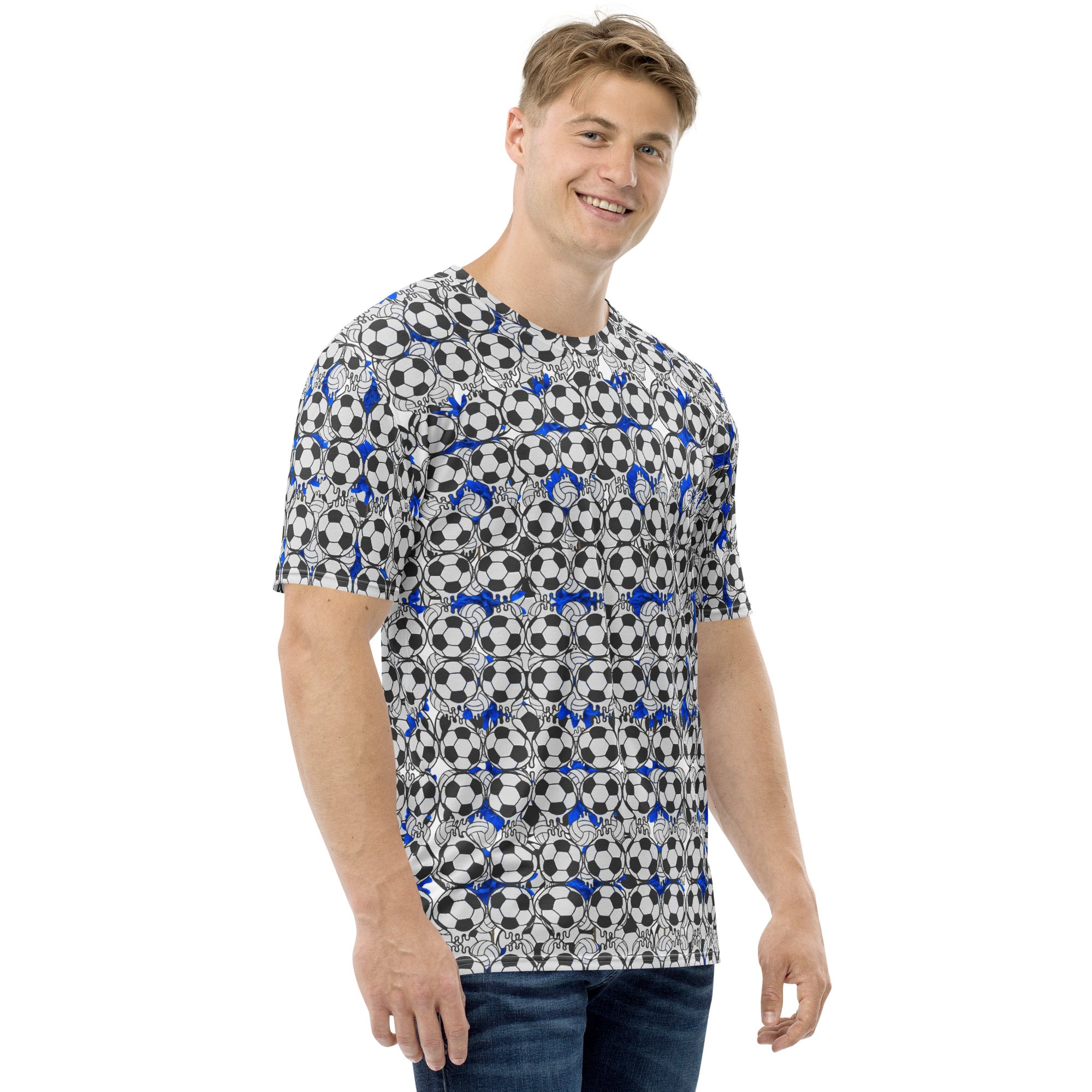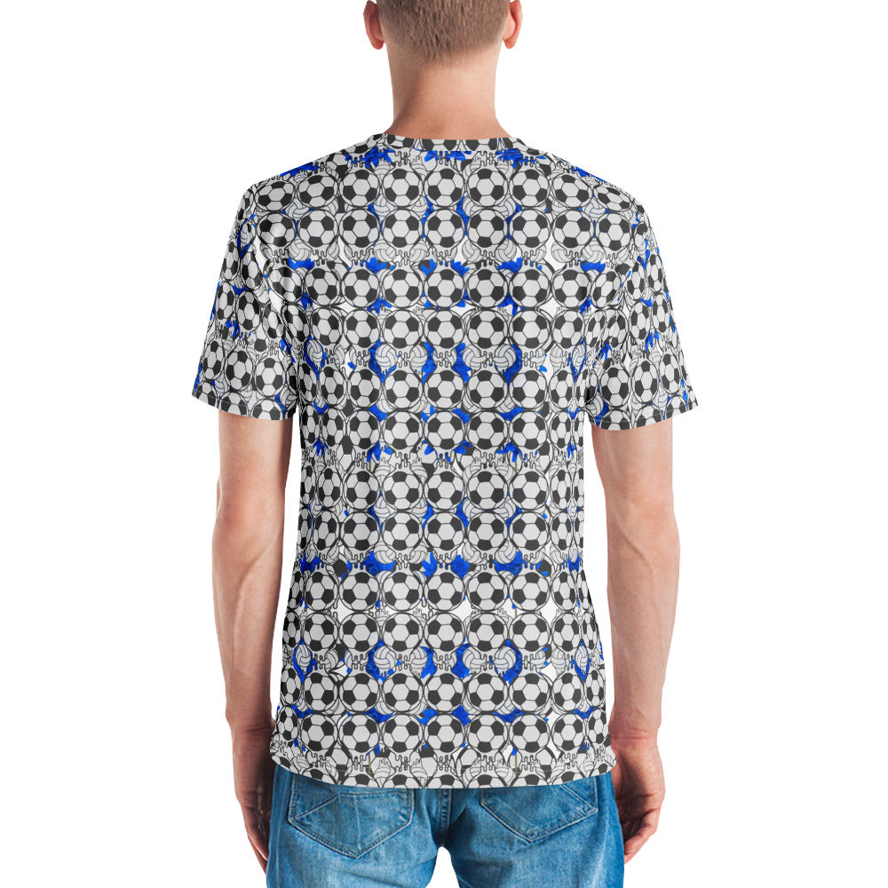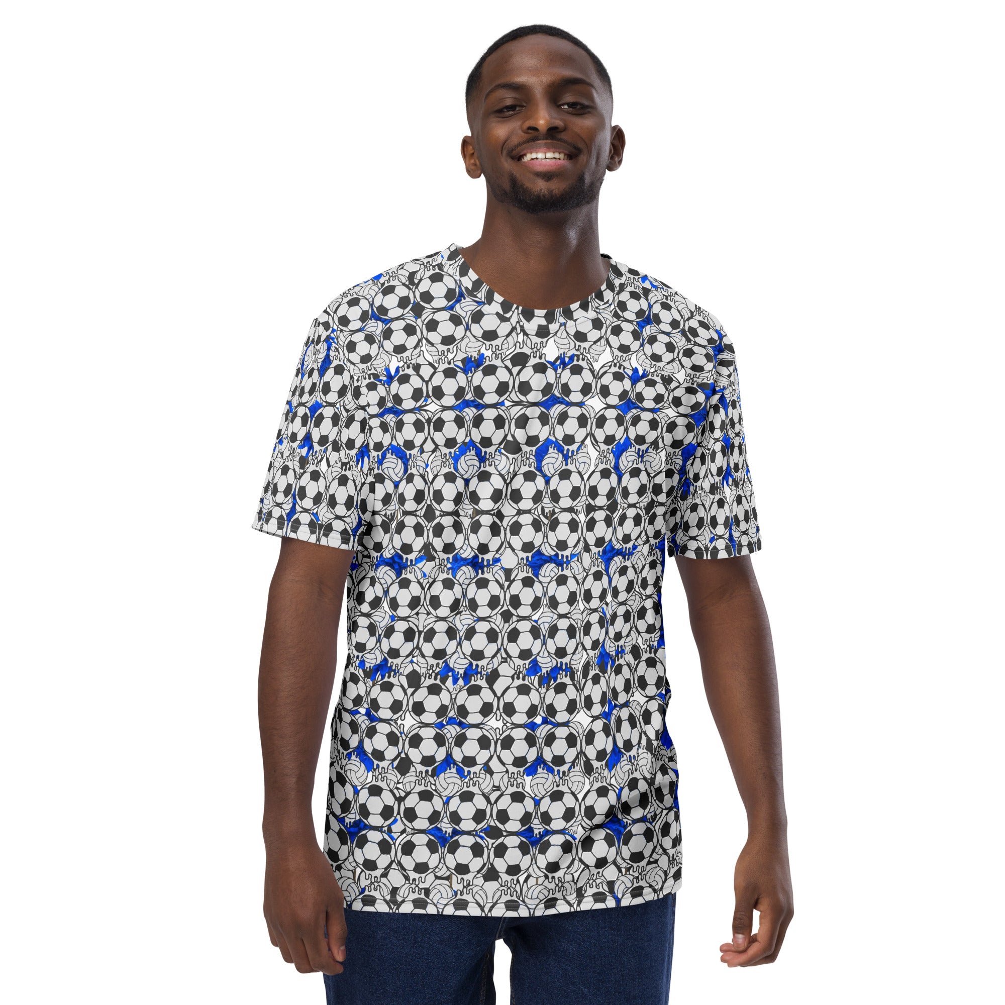 Introducing our exclusive design featuring real Blue Dahlia flowers photographed at botanical gardens, artfully combined with classic soccer ball patterns. This isn't just another sports tee – it's wearable botanical art for the nature-loving sports enthusiast.