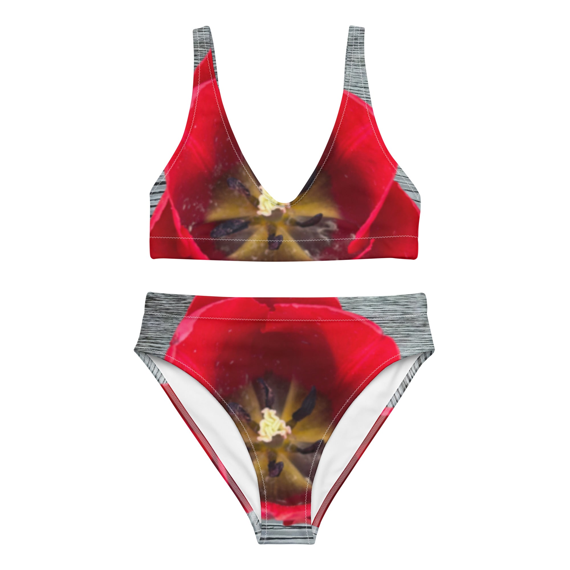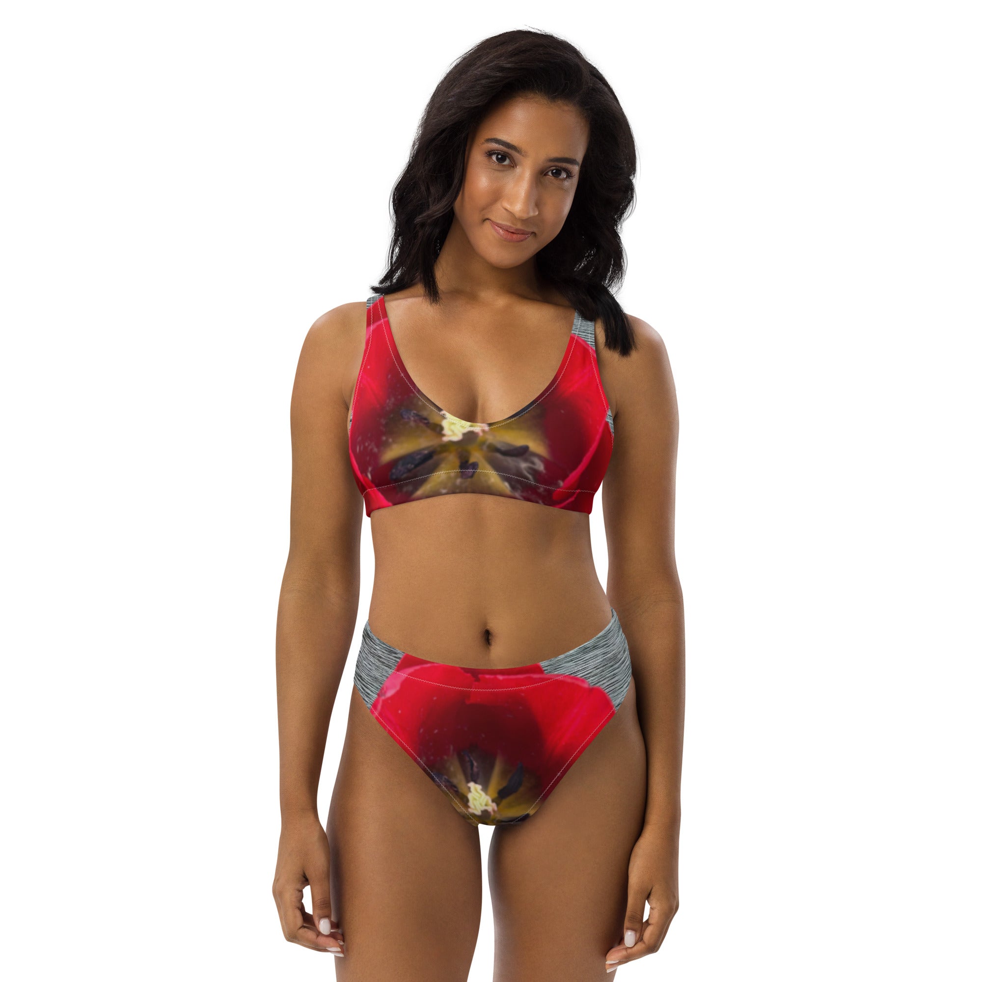 Make waves this summer with our stunning high-waisted bikini featuring authentic red tulip photography from our Central Park Spring Collection. Each piece showcases real tulips captured in full bloom, transformed into a vibrant swimwear statement that celebrates both nature and confidence!