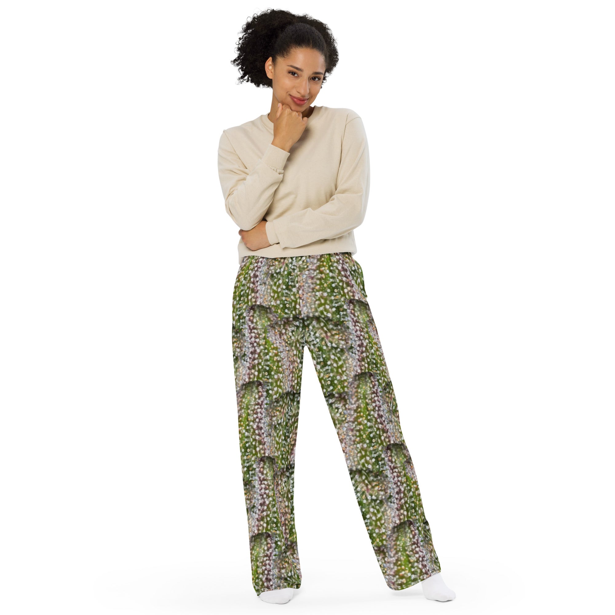 Transform your loungewear game with these energetic cannabis bud-inspired wide-leg pants! Featuring real cannabis photography transformed into vibrant leaf life imagery, these pants deliver the ultimate comfort of pajamas in a stylish, street-ready design.