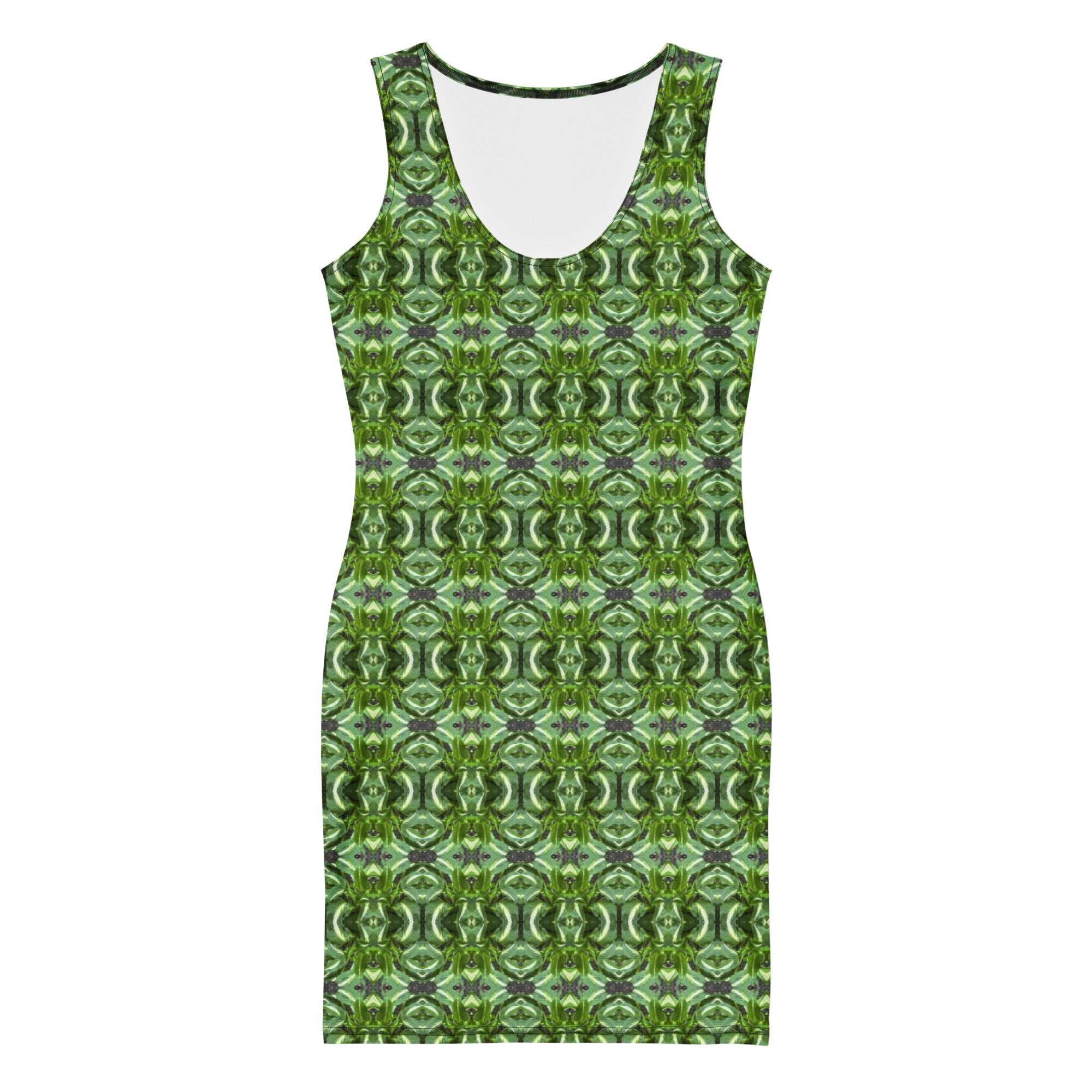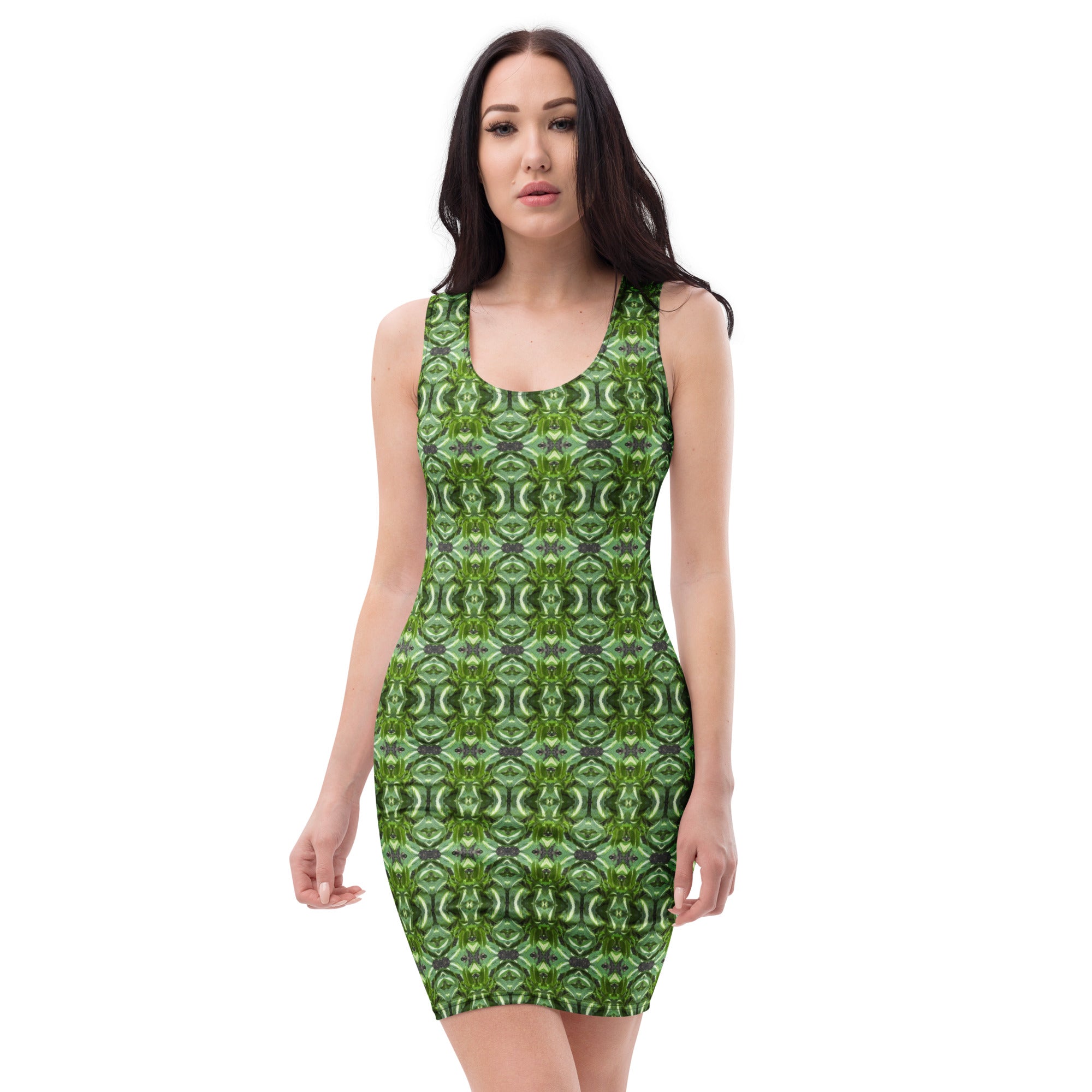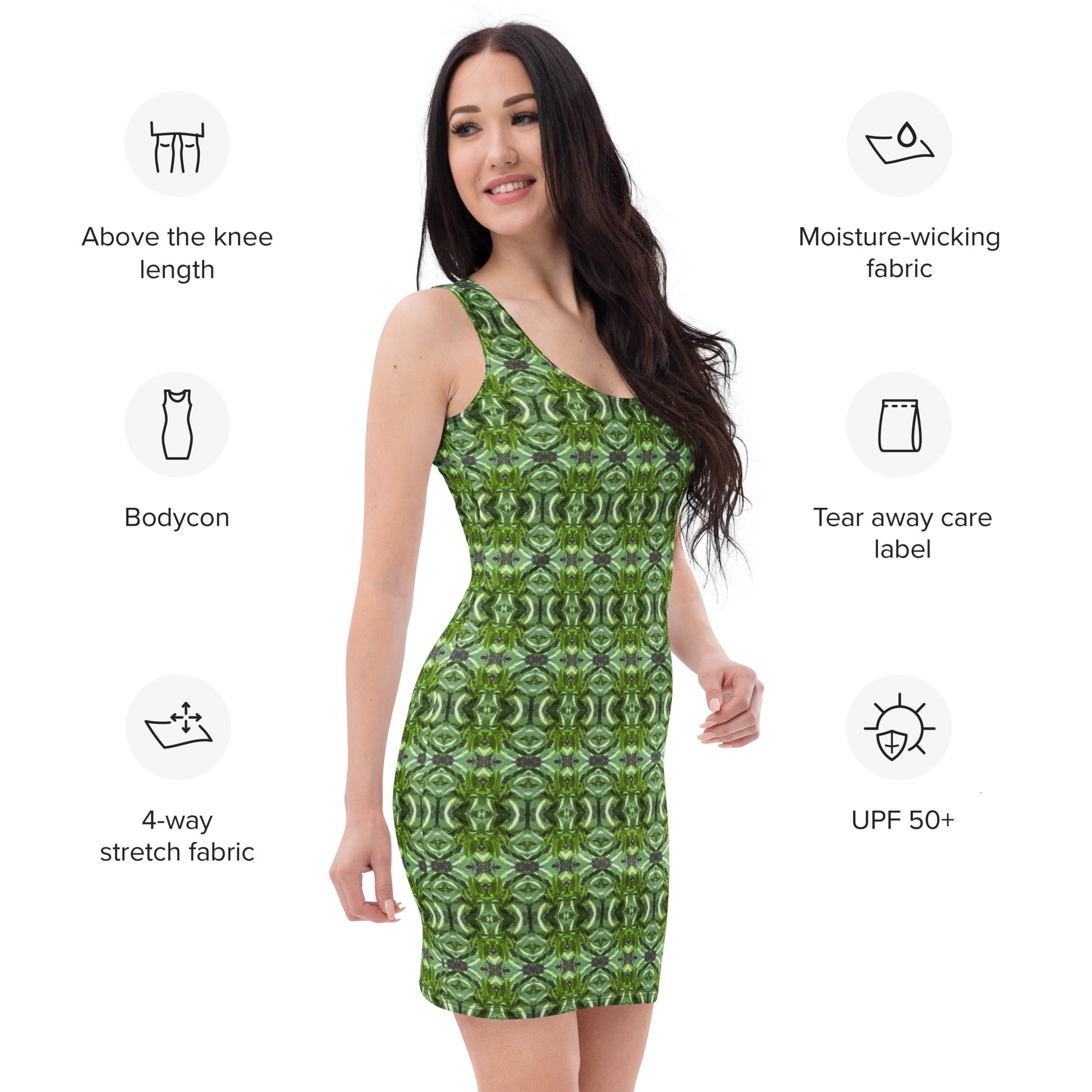 Made from the Siebold Plantain Lily redesigned to make this green statement and look fabulous in this all-over printed, fitted dress.